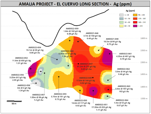- Highlight of new results include AMDD22-061, 4.35m @ 401 g/t Ag, 0.79 g/t Au